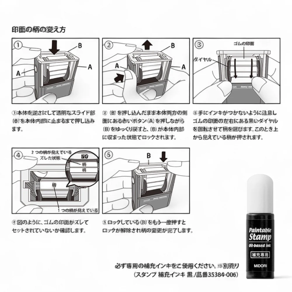 Includes: 1 rotating stamp with 12 patterns, oil-based ink pad, PET case (hangable)